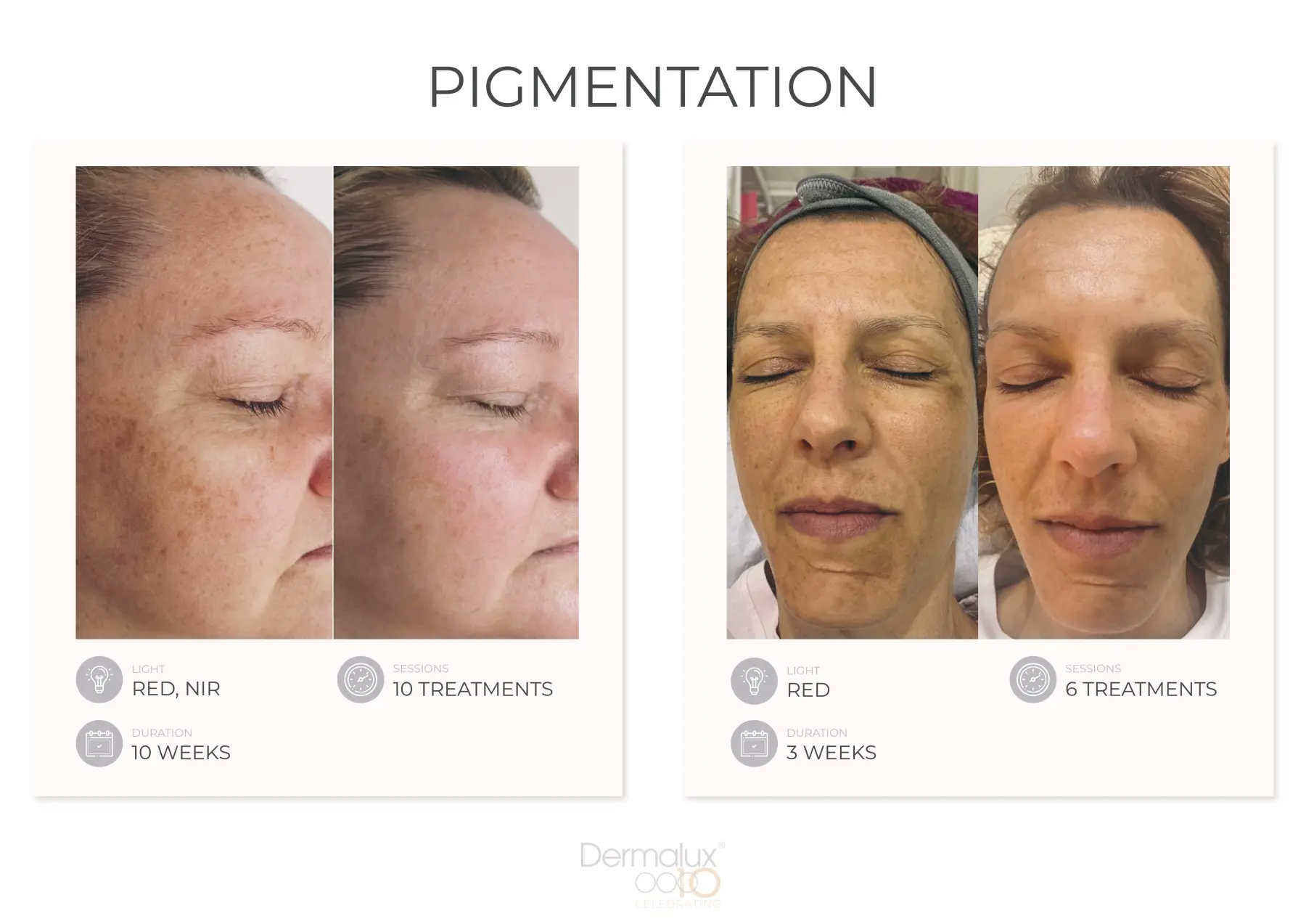 Nahinfrarotlicht stärkt und festigt beeinträchtigte, umweltgeschädigte und empfindliche Haut. Es ist auch wirksam bei der Behandlung von Hyperpigmentierung.