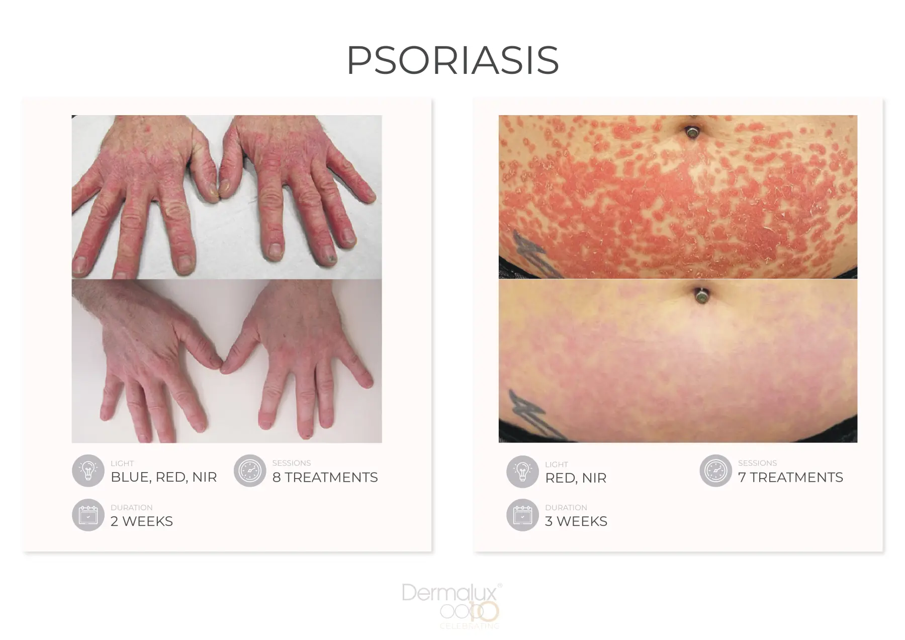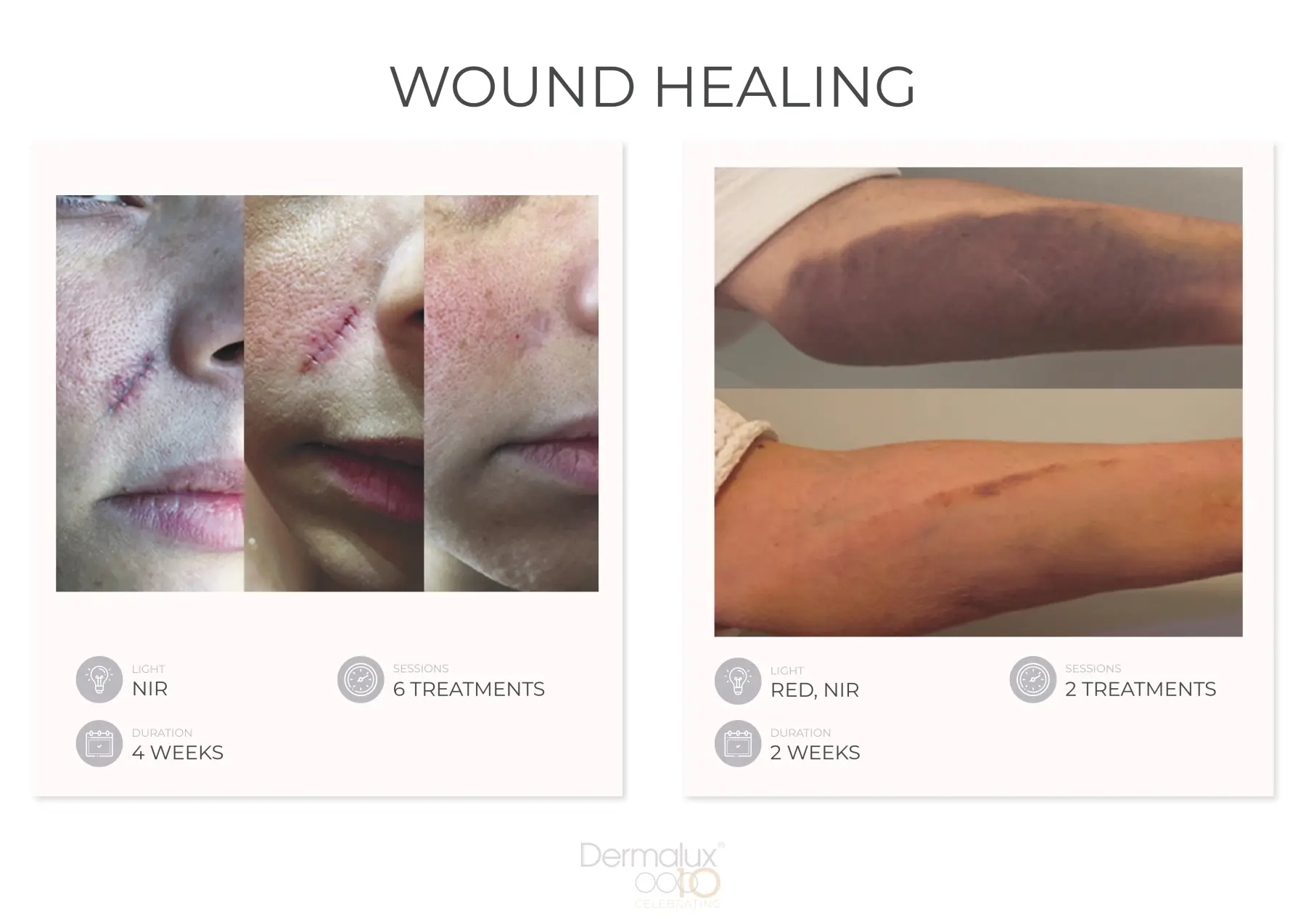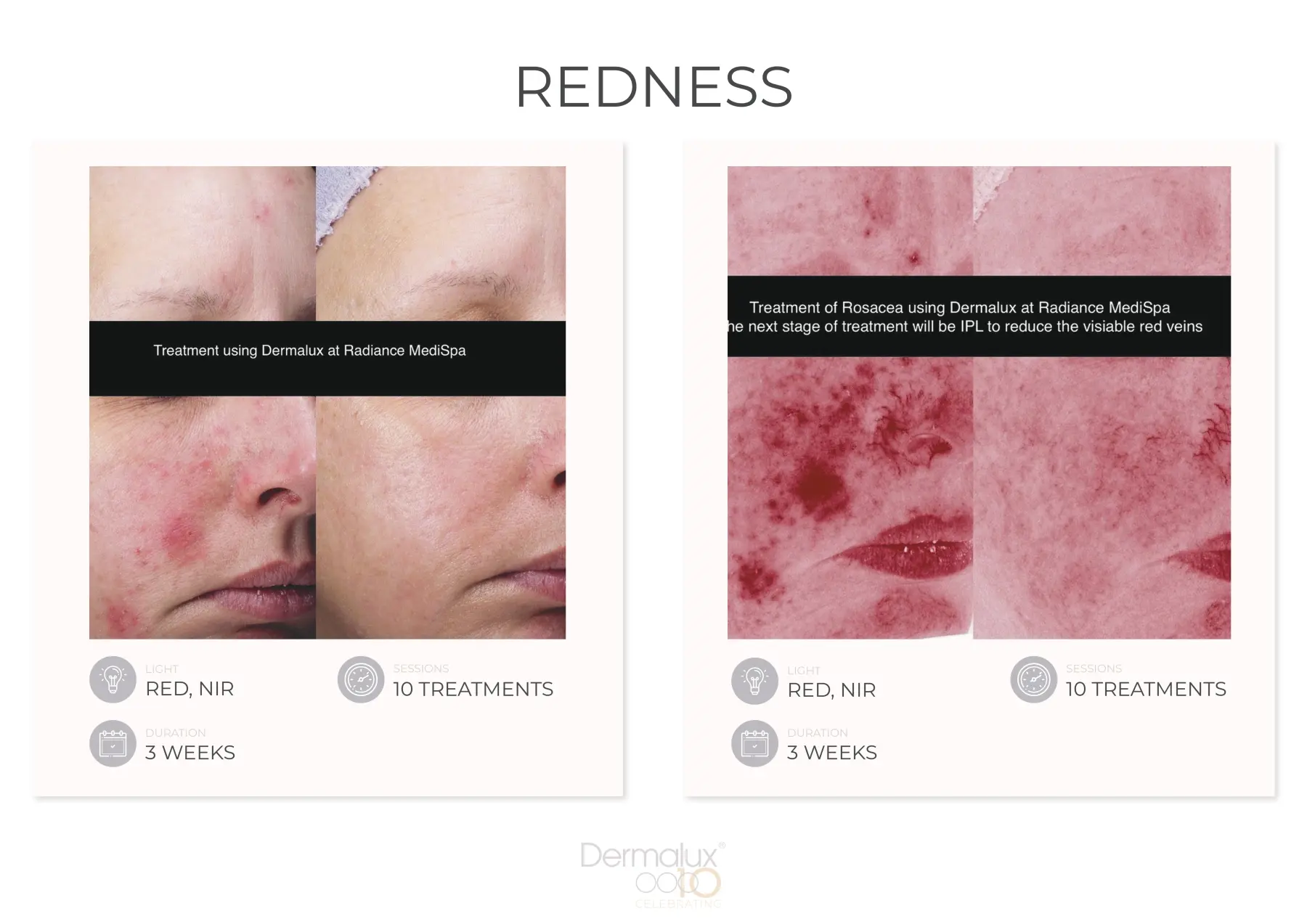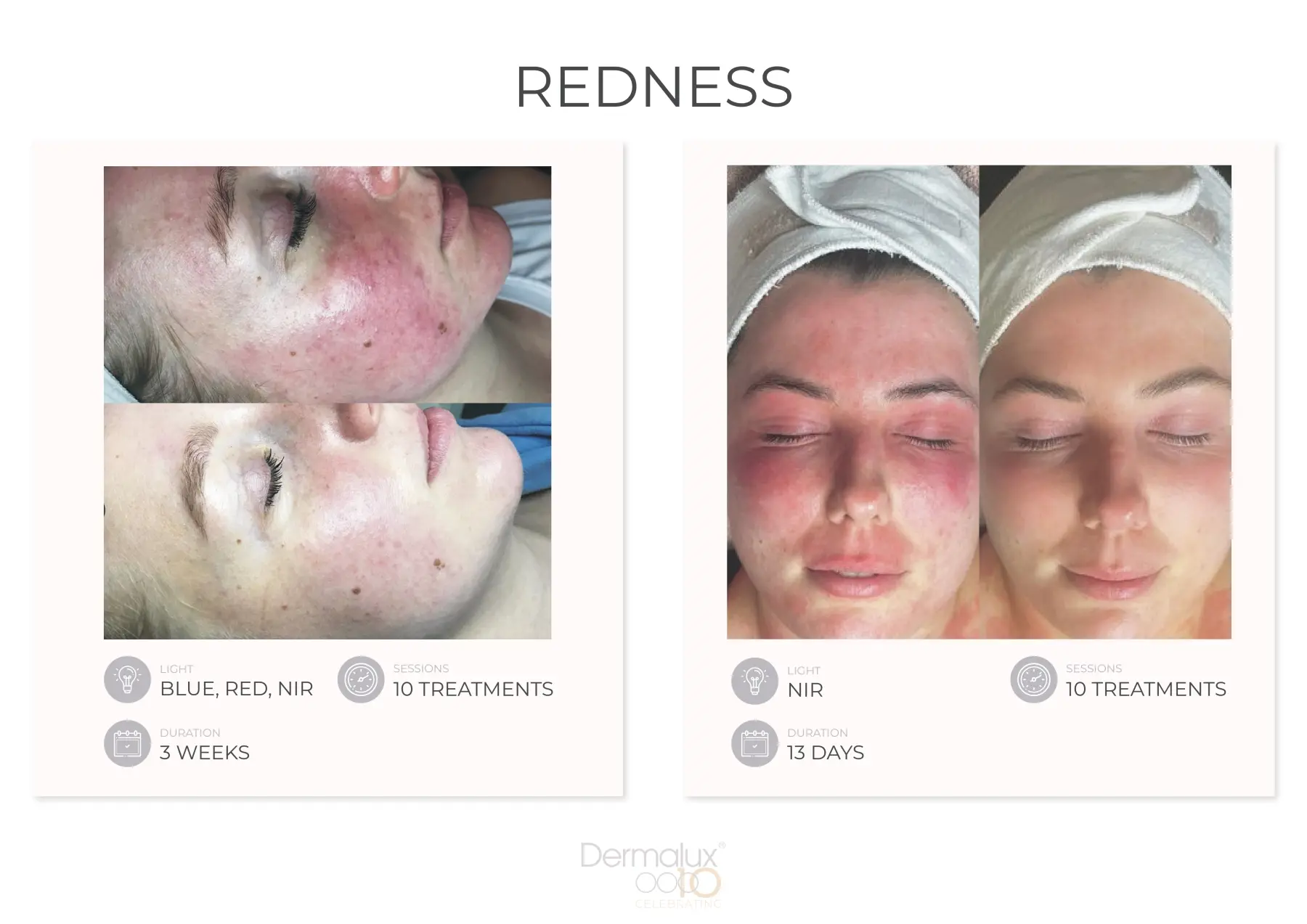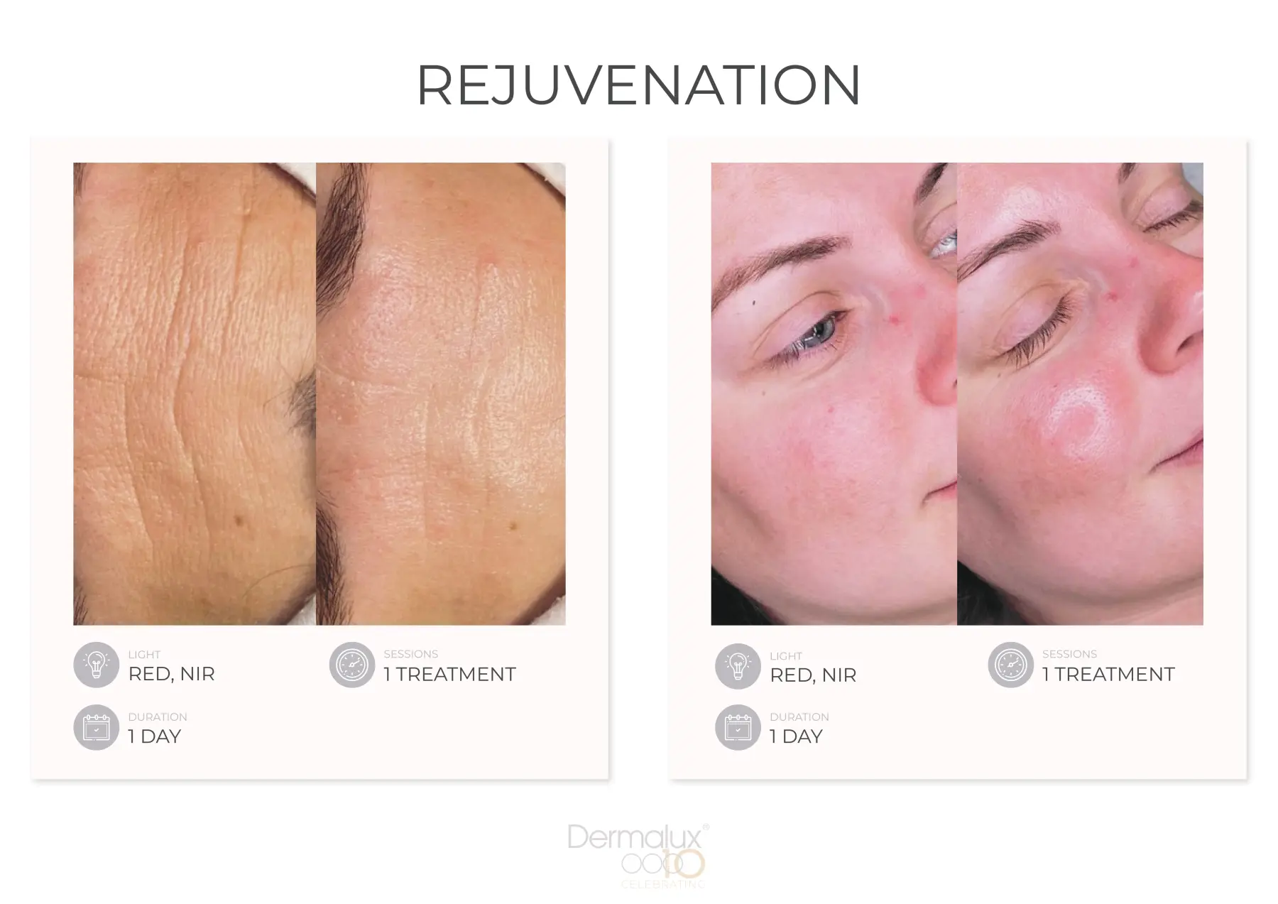 Die Dermalux LED-Phototherapie ist eine preisgekrönte, medizinisch zertifizierte Behandlung, die klinisch erprobte Lichtwellenlängen einsetzt, um die Haut ohne Schmerzen und Ausfallzeiten signifikant zu verbessern. Erleben Sie bereits ab der ersten Behandlung eine sofortige Verbesserung des Hauttons, der Feuchtigkeit und der Leuchtkraft der Haut. Gleichzeitig regt das wohltuende Licht tiefere Zellprozesse an, wodurch langanhaltende, positive Effekte erzielt werden.