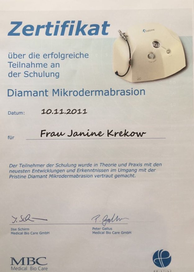 Ich war heute das erste Mal zur Diamant-Mikrodermabrasion und bin von Frau Krekow begeistert. Sehr sympathisch und kompetent. Sie ließ sich Zeit und ging auf mich ein. Meine Haut fühlt sich an wie Seide - ich komme mit Sicherheit wieder! :-)