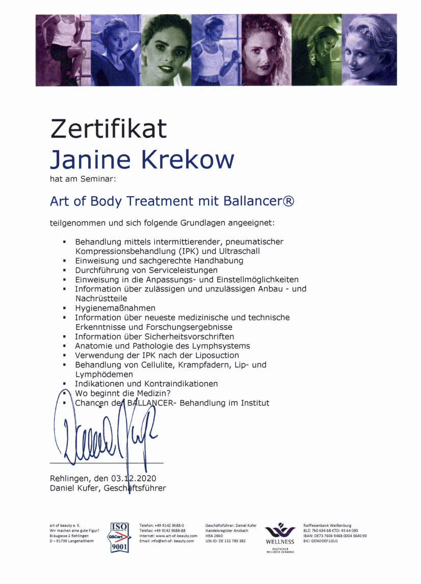 Frau Janine Krekow ist eine sehr freundliche, liebe und aufmerksame Person! Sie behandelt mit größtem Feingefühl und Fachwissen und berät ihre Kunden mit Köpfchen! Ich bin immer überglücklich mit den Ergebnissen und freue mich jedes Mal wieder zu ihr zu kommen! Sie hat mir immer erfolgreich mit meiner Akne geholfen o