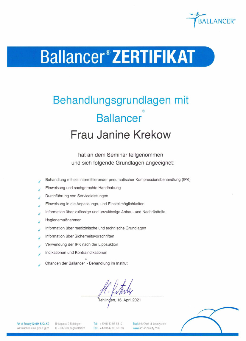 Frau Janine Krekow ist eine sehr freundliche, liebe und aufmerksame Person! Sie behandelt mit größtem Feingefühl und Fachwissen und berät ihre Kunden mit Köpfchen! Ich bin immer überglücklich mit den Ergebnissen und freue mich jedes Mal wieder zu ihr zu kommen! Sie hat mir immer erfolgreich mit meiner Akne geholfen oder mir einfach einen wunderschönen Wimpernaufschlag gezaubert! Auch ihre Ratschläge und ihr offenes Ohr für ihre Kunden sind Balsam für die Seele. Wer sich wie zu Hause und gut aufgehoben fühlen möchte UND auch noch ein tolles Preis-Leistungs-Verhältnis wünscht, ist hier an der richtigen Adresse! Ich würde Janine immer wieder weiterempfehlen! :)